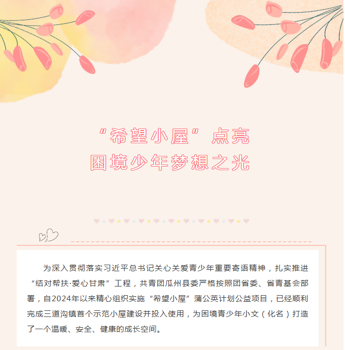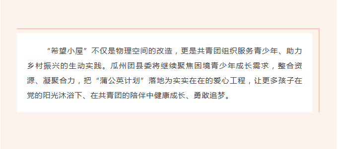 “希望小屋”点亮困境少年梦想之光——瓜州县“蒲公英计划”助力困境青少年成长纪实